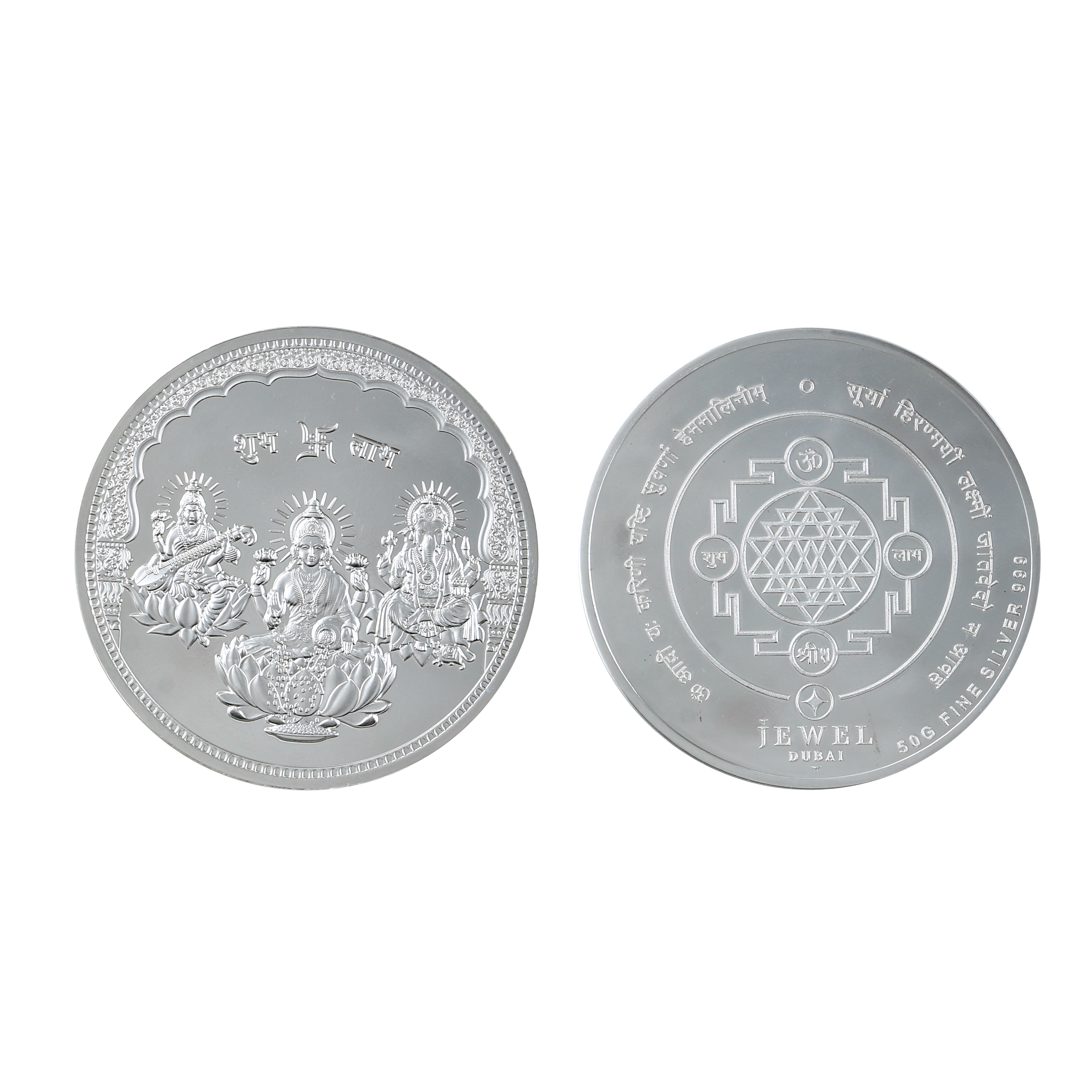 Invoke divine blessings with this beautifully crafted 10 Grams Silver Coin, made from 999 pure silver. The coin features sacred depictions of Goddess Lakshmi (prosperity), Lord Ganesh (wisdom & good fortune), and Goddess Saraswathi (knowledge & learning). Perfect for auspicious occasions, festivals, weddings, or as a spiritual keepsake, this coin brings together purity, devotion, and timeless value in one masterpiece.