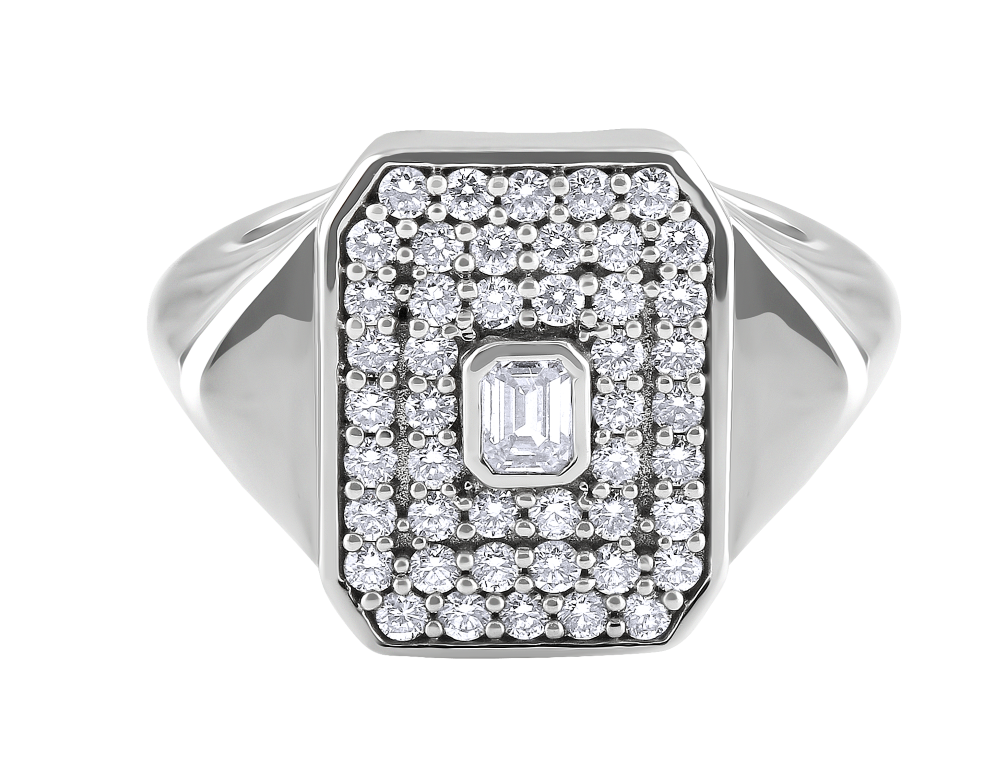 Radiating brilliance from every angle, this royal grid diamond pinky ring is set in rich gold and detailed with meticulously placed diamonds. A masterpiece made for those who appreciate refined craftsmanship.